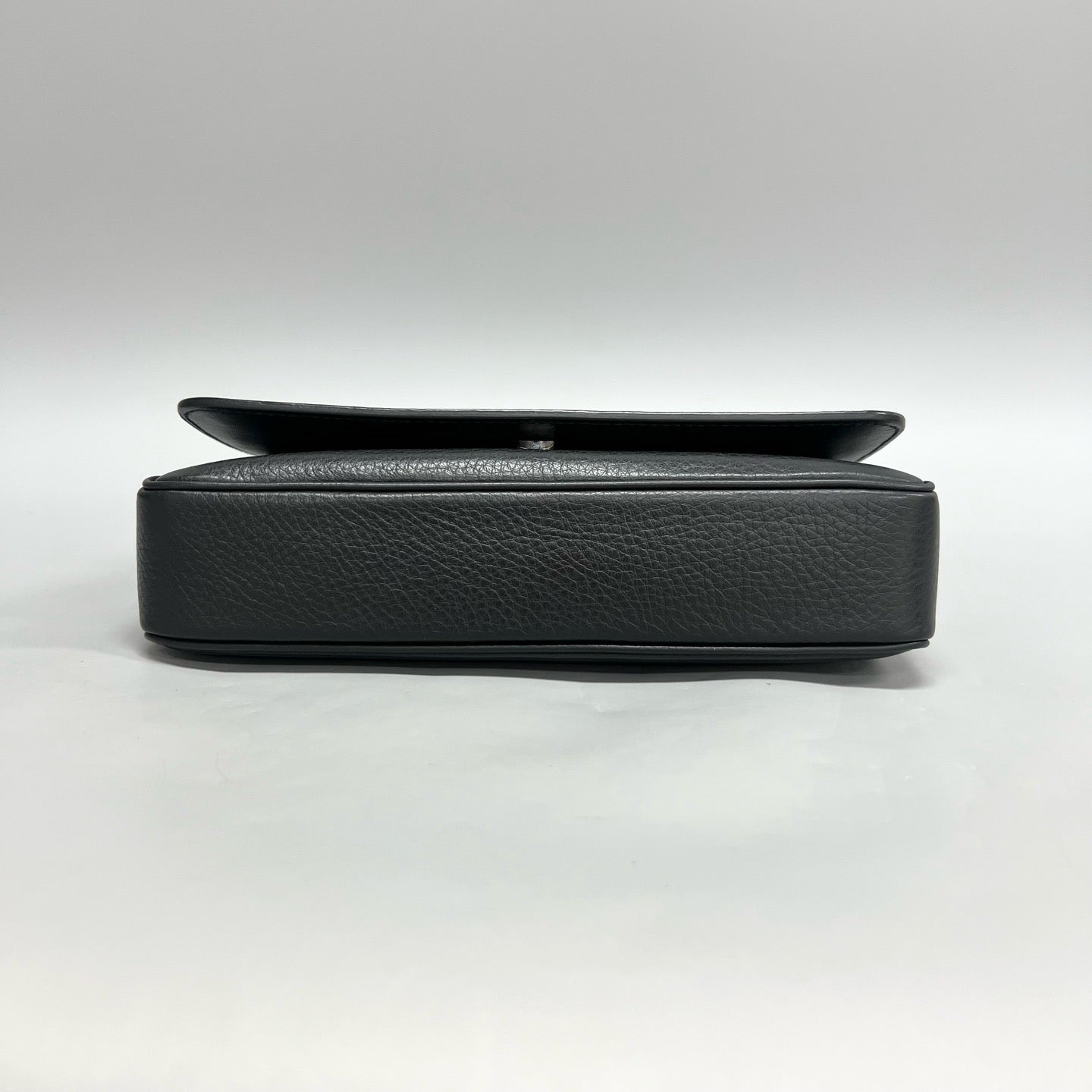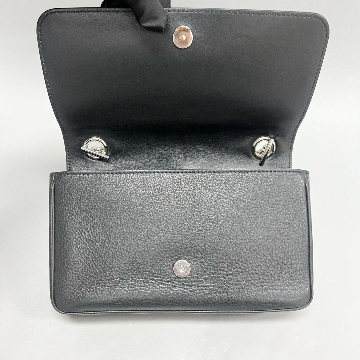 This Balenciaga flap chain bag is crafted in smooth black leather, featuring a clean, structured silhouette that reflects the brand’s modern and understated aesthetic. The chain strap adds a refined edge, making it suitable for both day-to-night styling. Measuring approximately 22 × 12.5 cm, the bag offers a compact yet functional interior for daily essentials.
