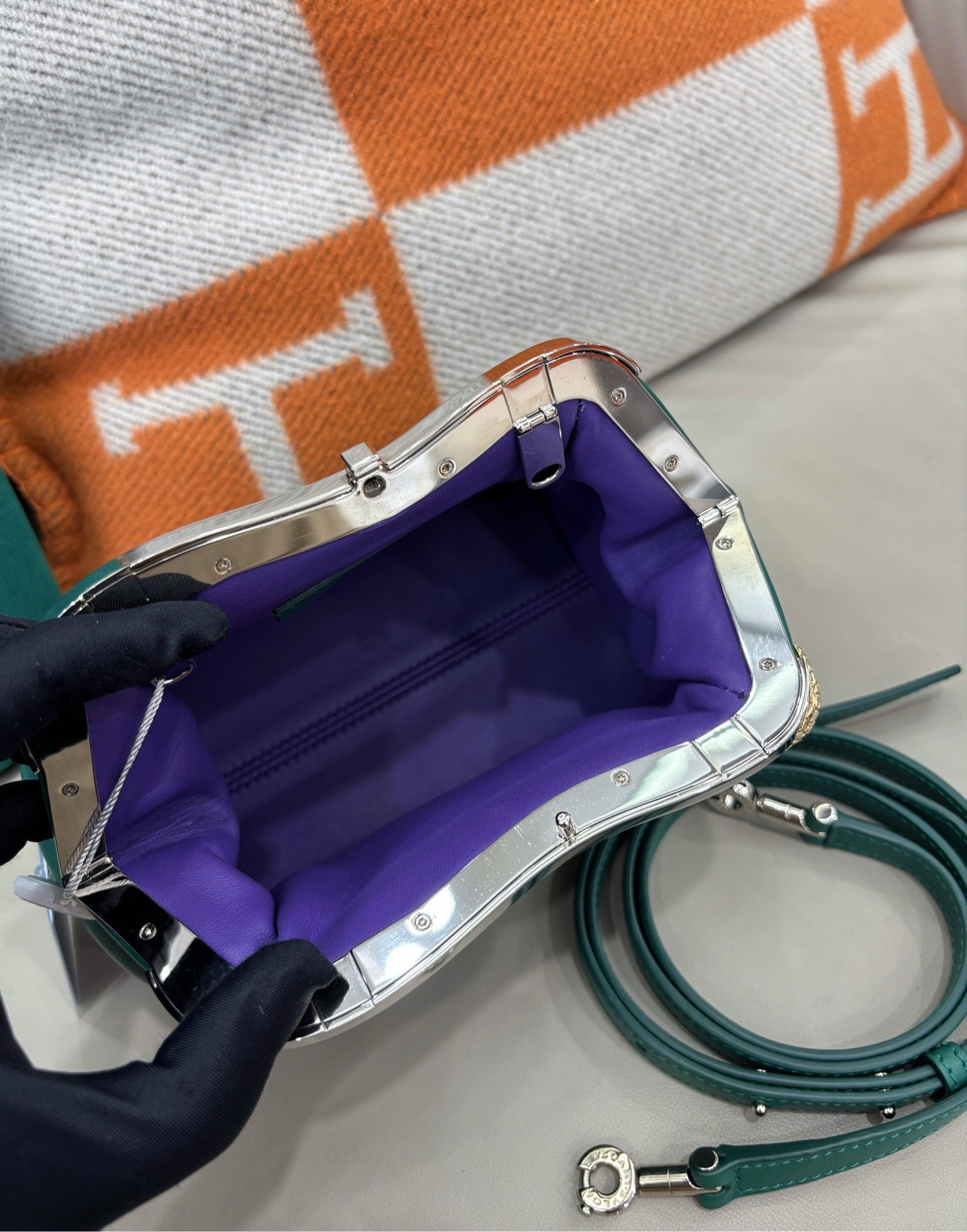 A stunning Bvlgari Serpentine cloud-shaped kiss-lock bag, crafted in the maison’s iconic classic green.