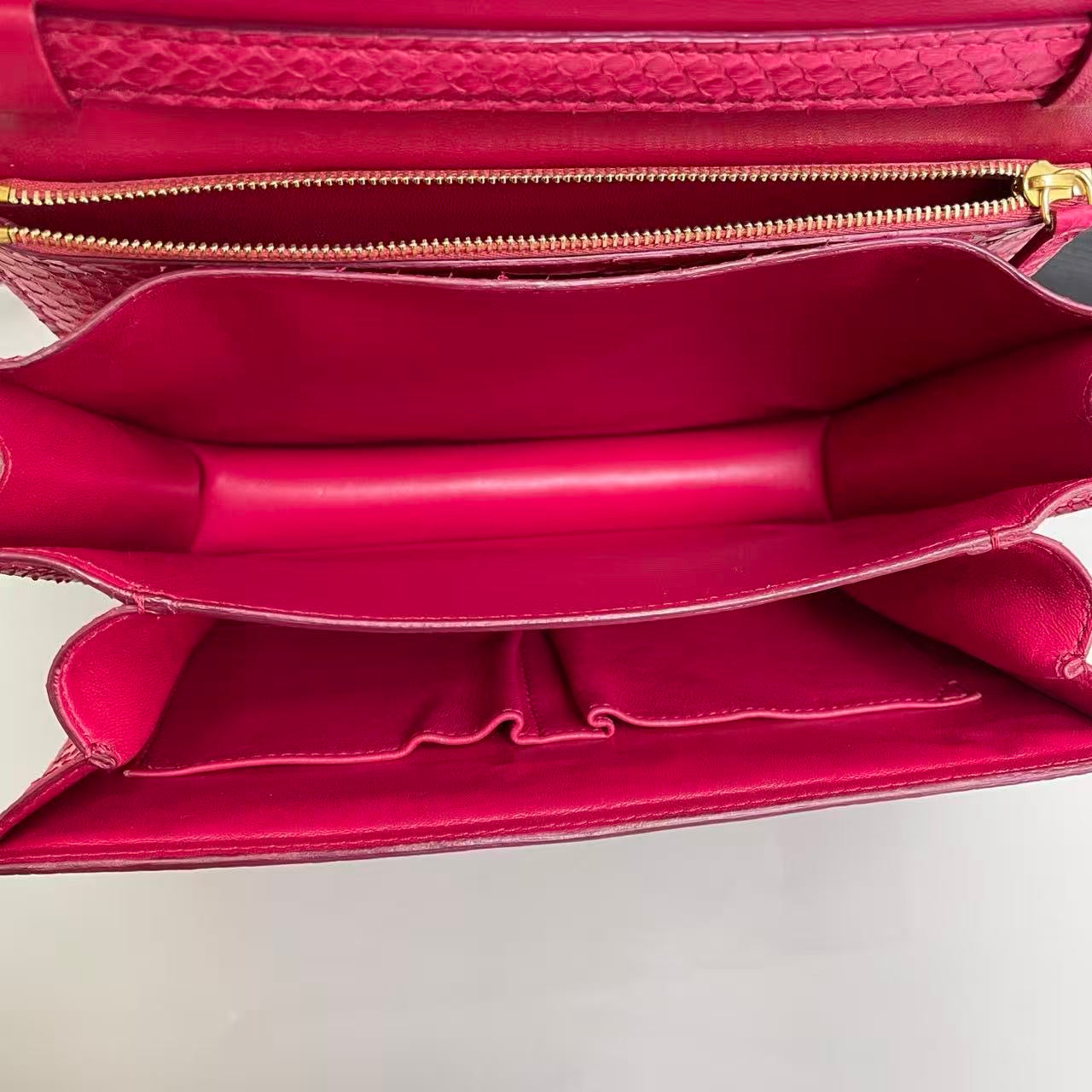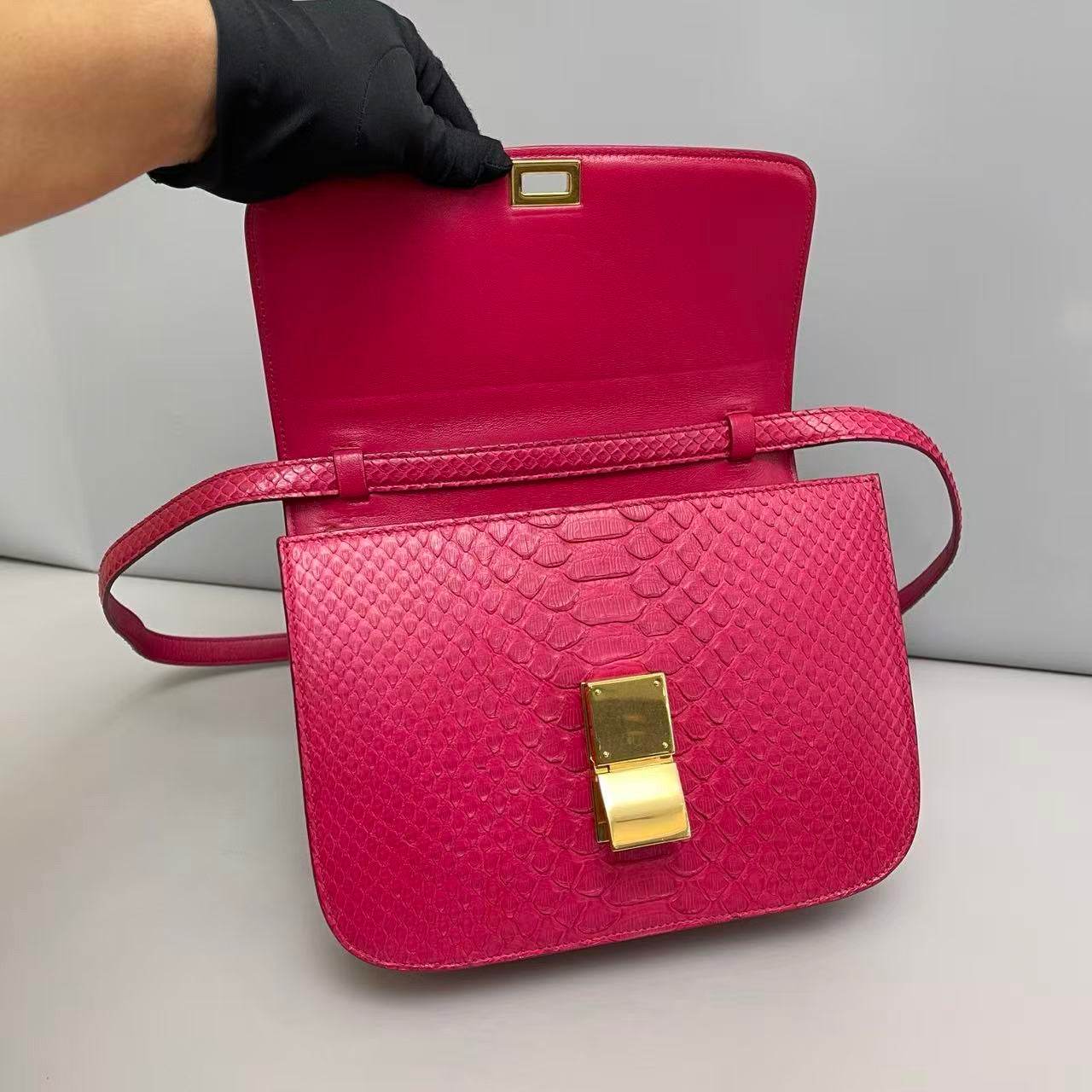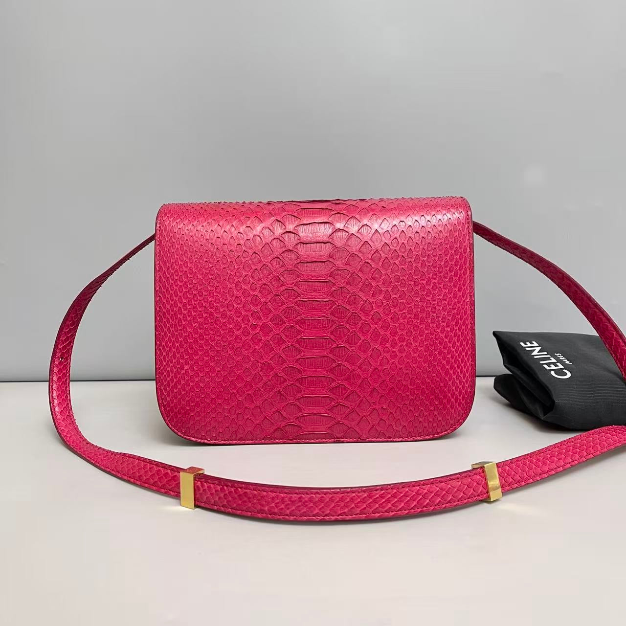 A beautifully preserved Celine Classic Box in a rare rose-pink leather, offering a refined pop of color with the line’s timeless minimalist silhouette.