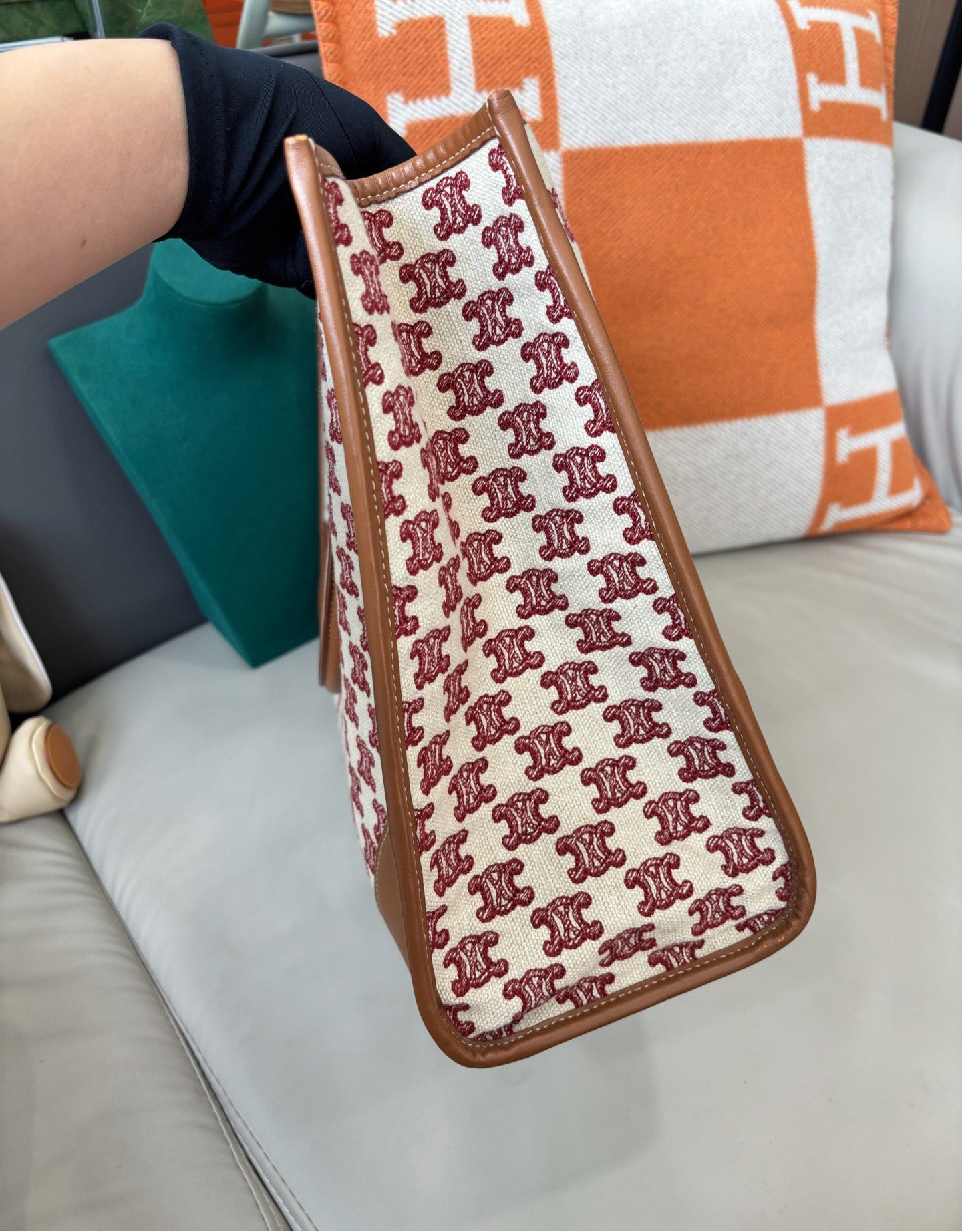 A high-capacity Celine tote crafted in the brand’s signature monogram canvas, offering a refined vintage aesthetic with modern practicality.