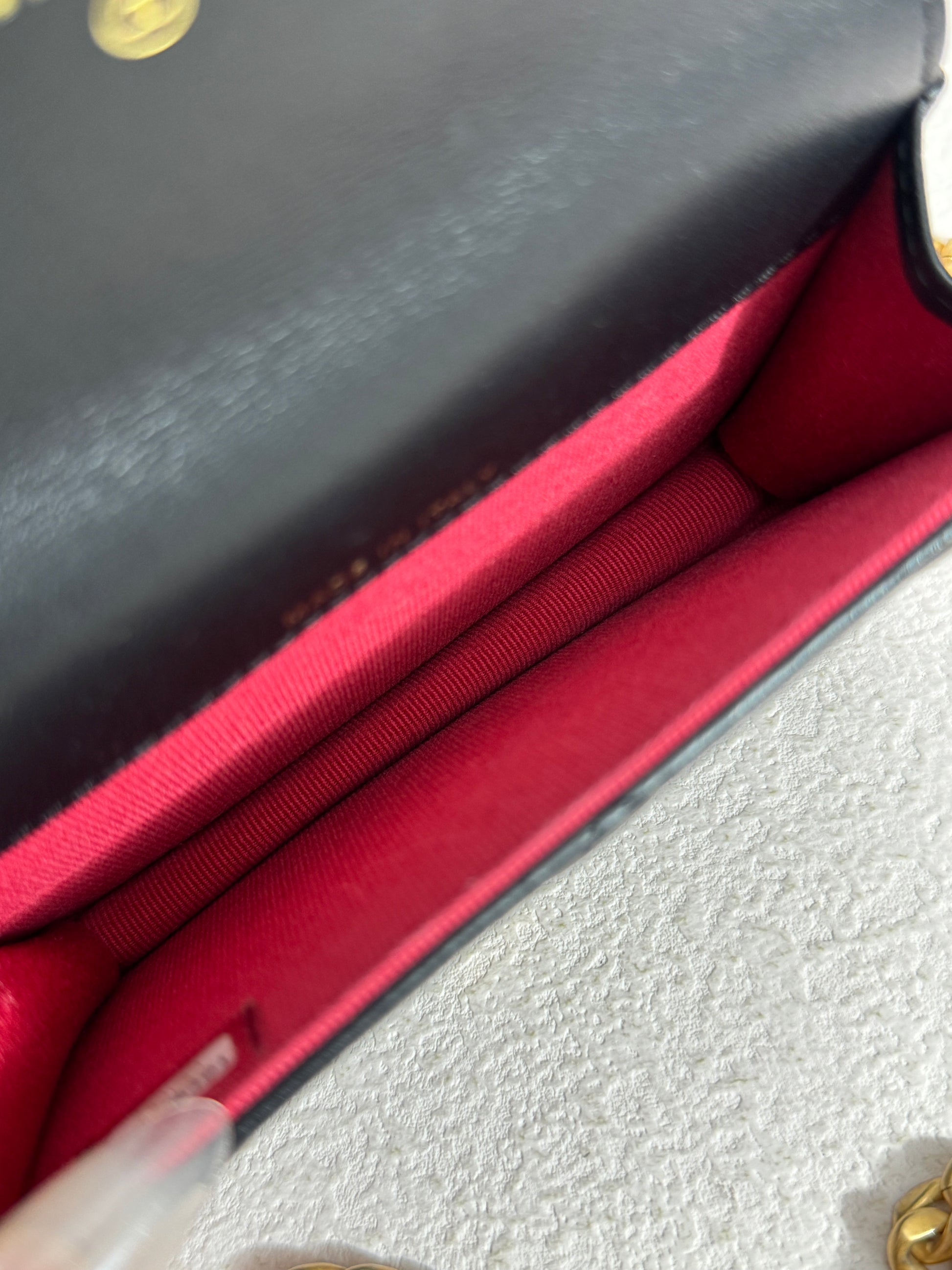 99% near-new condition • Includes chain strap & laser sticker • Versatile detachable-chain design. SIZE:12.5 × 4 × 9 cm