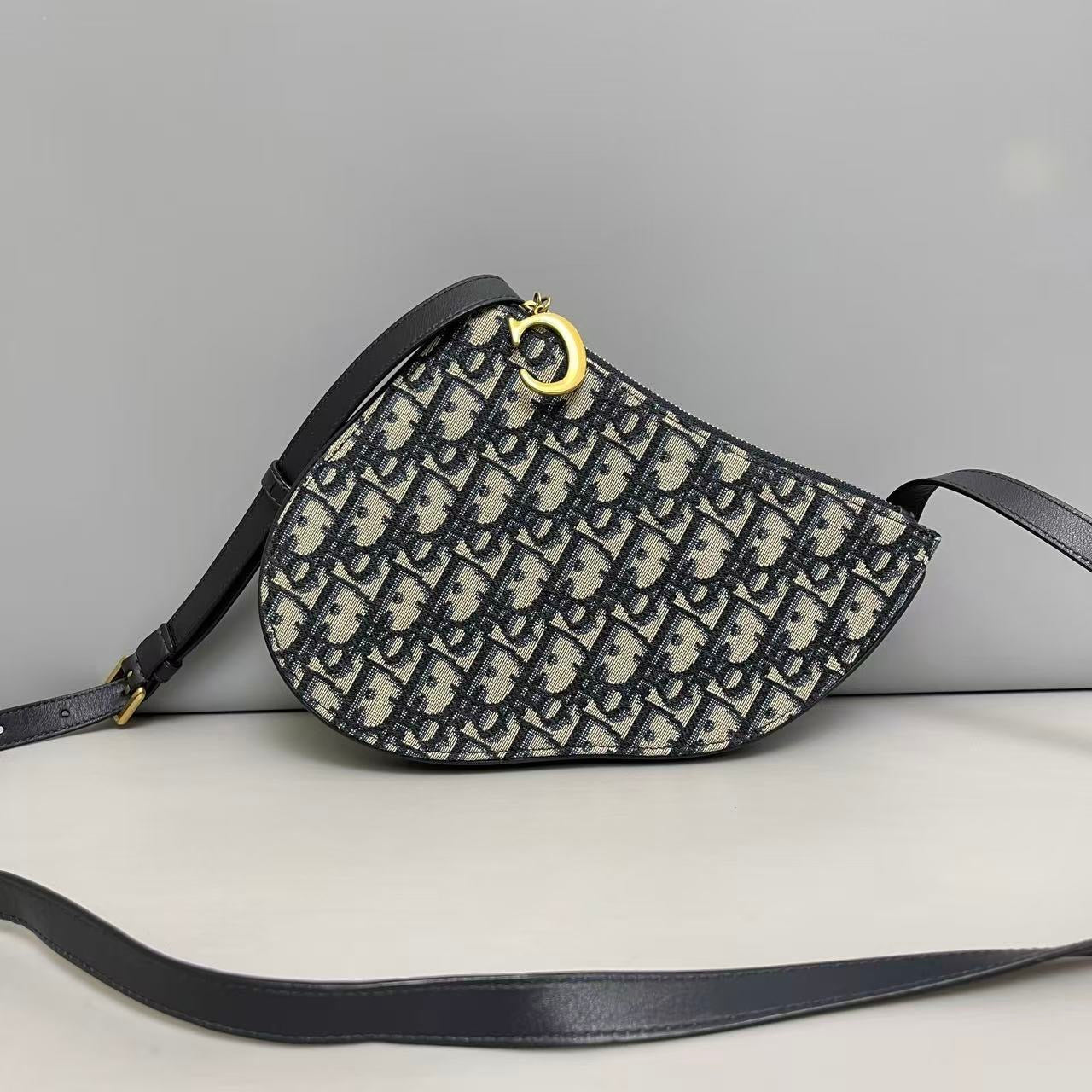 A refined Dior Saddle Accordion Bag crafted in the house’s signature blue Oblique jacquard.