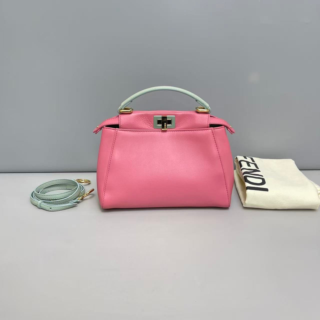 This Fendi Peekaboo small bag is crafted in full leather with a soft pink colorblock design, showcasing the brand’s iconic structured silhouette and timeless elegance. Measuring approximately 23 × 18 cm, the bag offers a compact yet practical interior suitable for daily essentials. The refined design transitions effortlessly from daytime styling to more polished occasions.