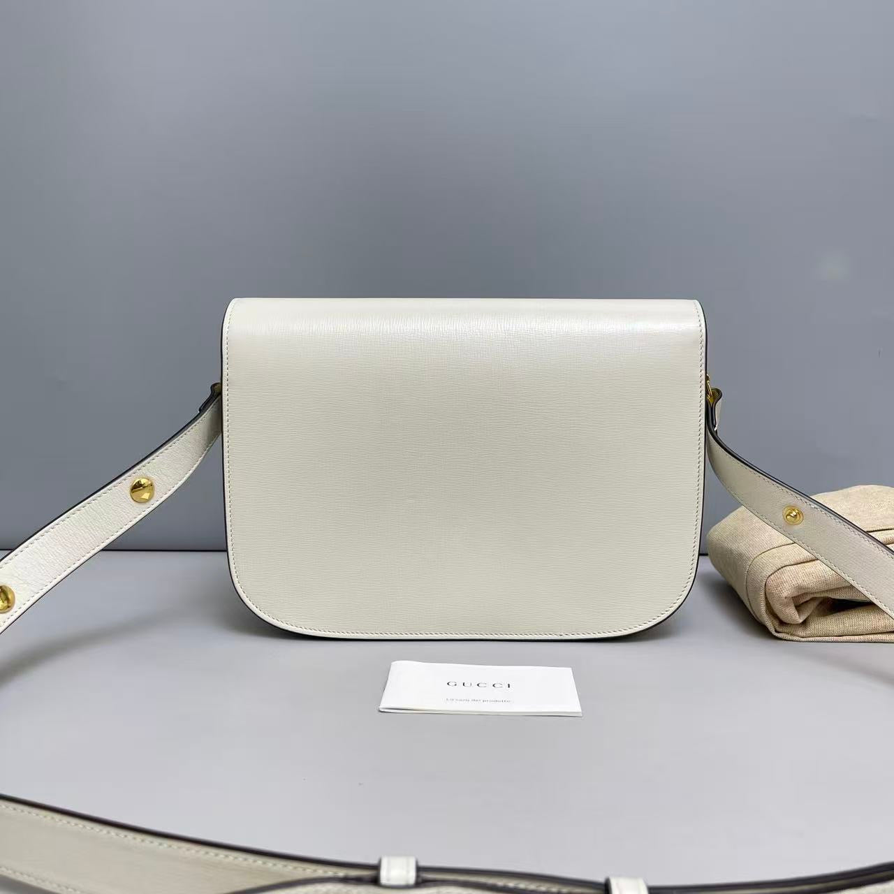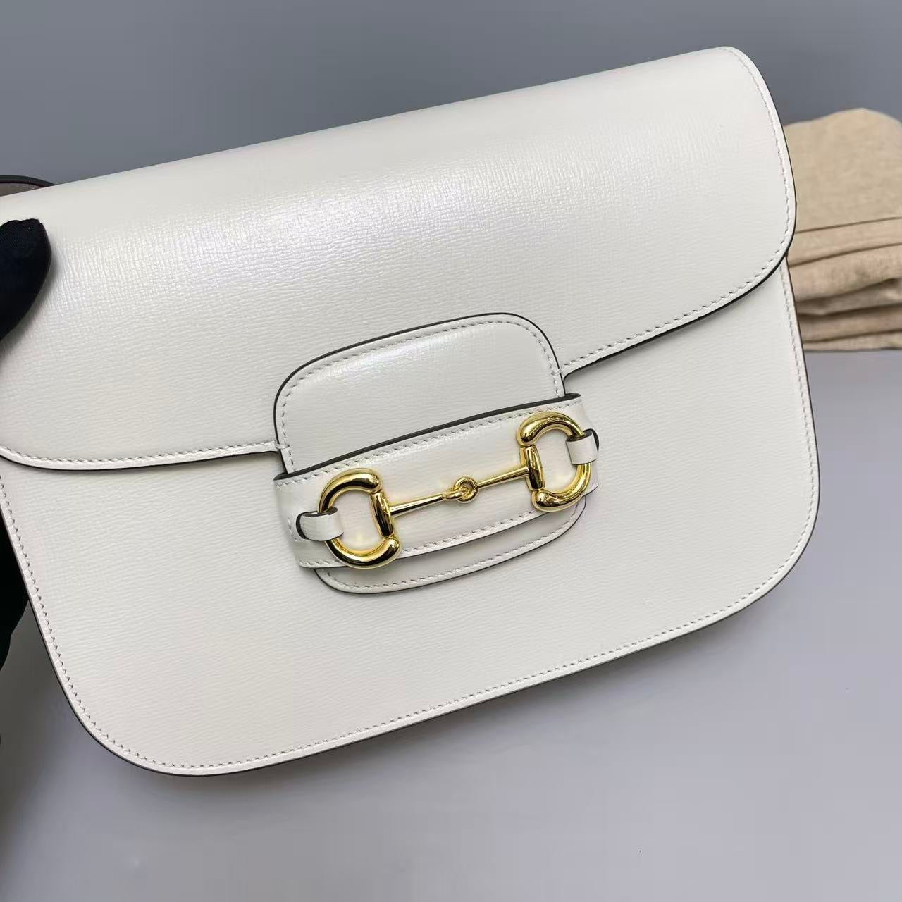 A beautifully crafted Gucci 1955 Horsebit in smooth white leather, offering an elegant, structured silhouette that pairs effortlessly with both casual and formal looks.