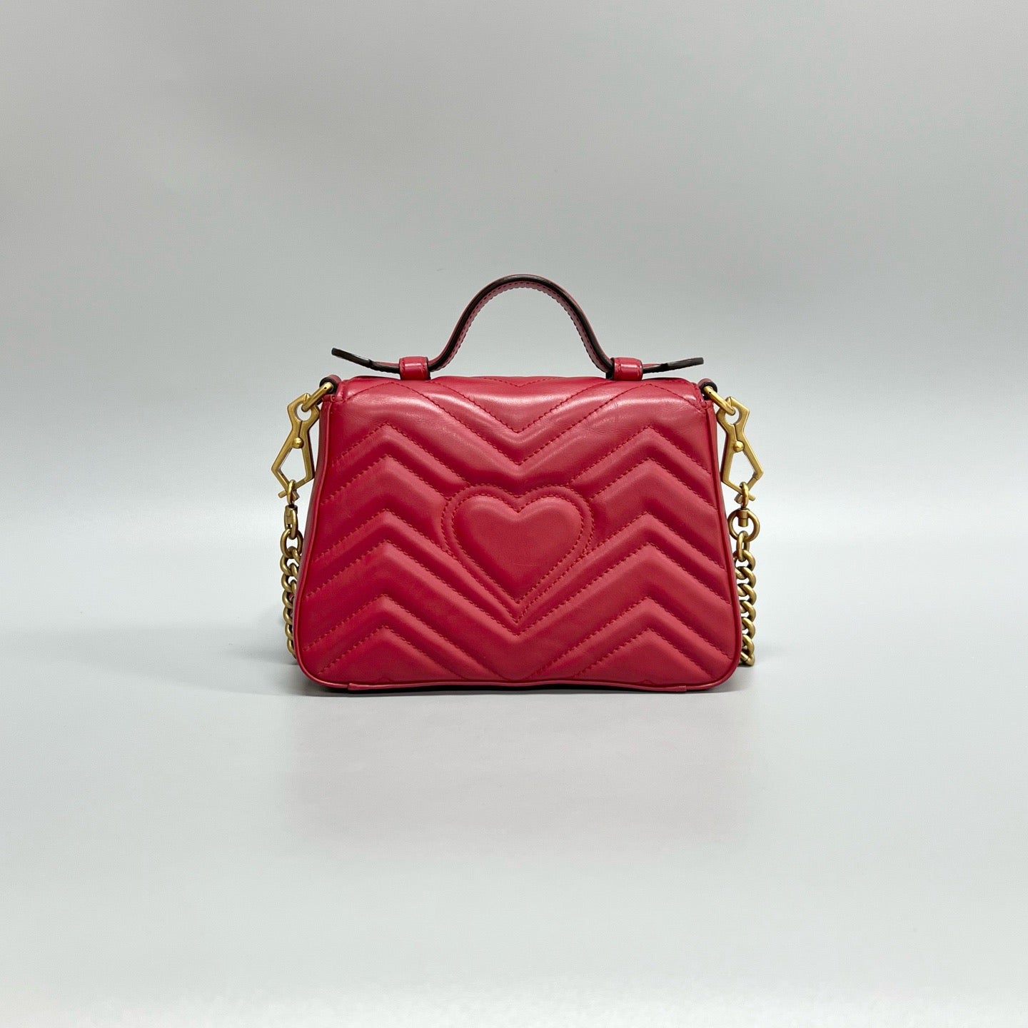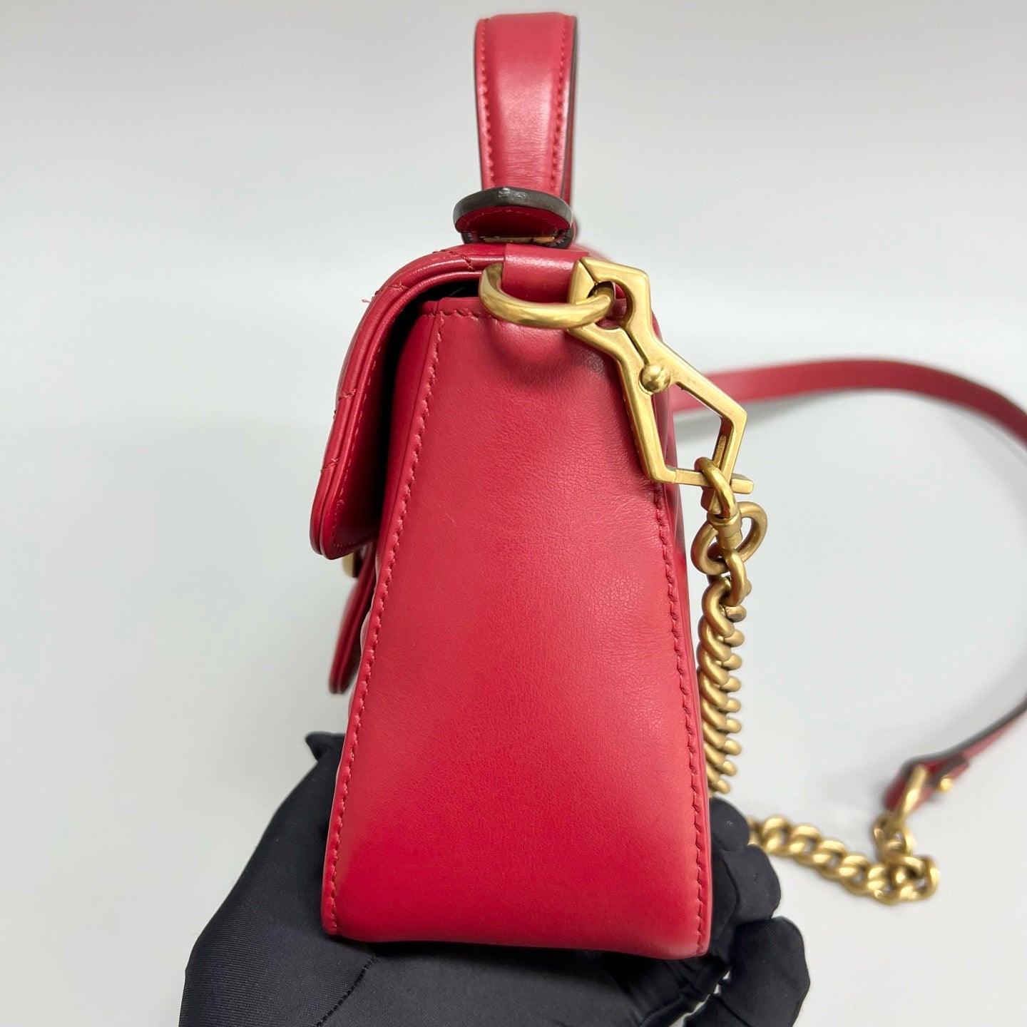 This Gucci GG Marmont mini bag is crafted in vibrant red leather, featuring the signature GG logo and a structured silhouette that balances classic design with modern appeal. Designed for versatile wear, it can be carried by hand or worn as a shoulder or crossbody bag, making it suitable for both everyday use and refined occasions. Measuring approximately 20 × 14 × 8 cm, the bag offers a compact yet practical interior for daily essentials.