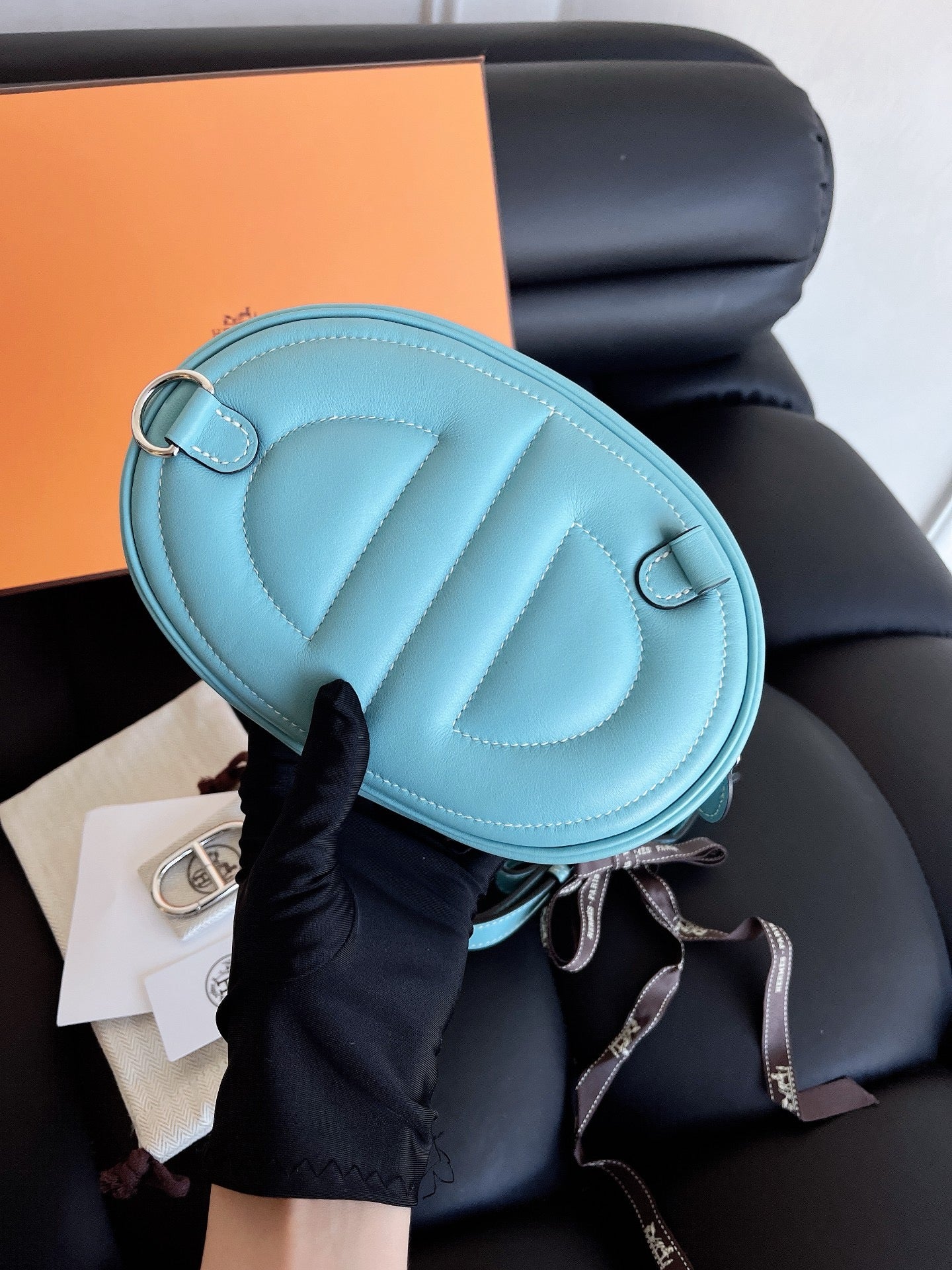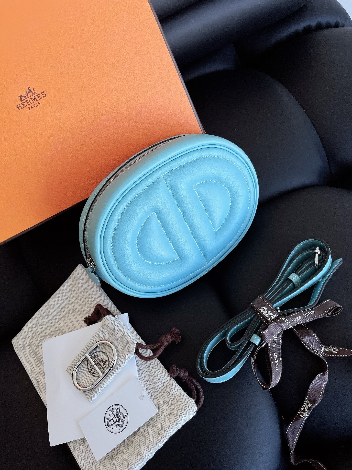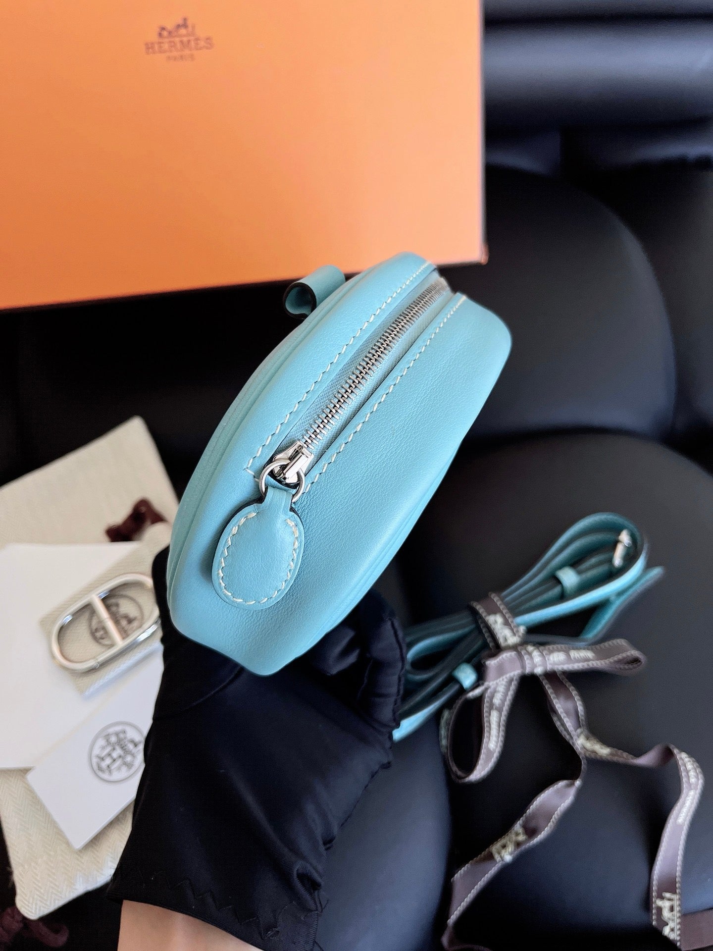 This Hermès In-The-Loop bag is crafted in smooth Swift leather in the highly sought-after 3P macaron blue, featuring the iconic loop design often referred to as the “pig nose” silhouette. Designed for versatile wear as both a belt bag and crossbody, it balances playful form with refined Hermès craftsmanship. Measuring approximately 19 × 13 × 4 cm, the bag offers a compact yet functional interior suitable for daily essentials.