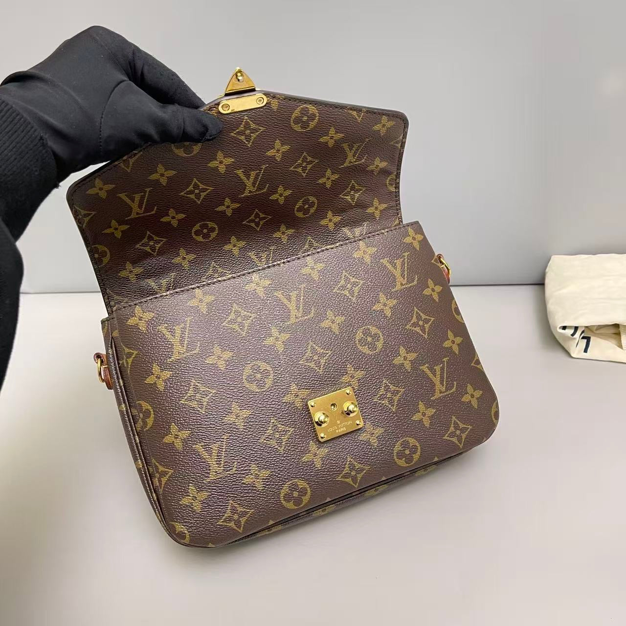 A classic Louis Vuitton Monogram messenger bag crafted in durable coated canvas, featuring a timeless flap-front silhouette and practical crossbody design.
