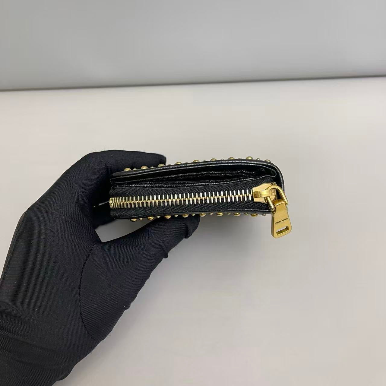 Miu Miu Black Studded Leather Short Wallet